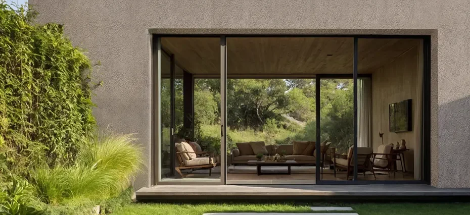 Paredes e tetos que recebem essa textura apresentam toque áspero, ranhuras profundas e manchamento moderado, o que reforça o caráter natural da solução e transmite autenticidade.